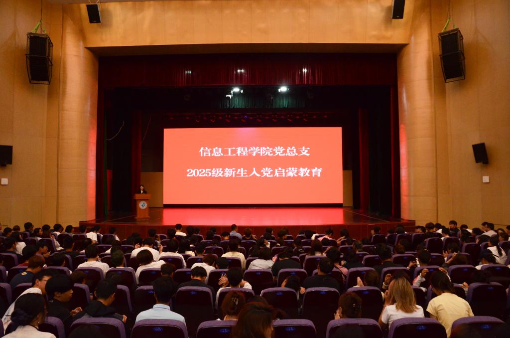 为扎实做好2025级新生入党启蒙教育,进一步深化学生对党的基本知识、基本理论和入党程序的理解,端正入党动机,明确入党条件,增强党在青年学生中的吸引力和凝聚力,信息工程学院党总支紧抓新生“迎新季”和入学“关键期”,9月26日在益心宫开展2025级新生入党启蒙教育活动。信息工程学院党总支书记李树旺、副书记于美茜、专职组织员姜林、辅导员张煜博及2025级全体新生参加。会议由辅导员阎丽萍主持。
