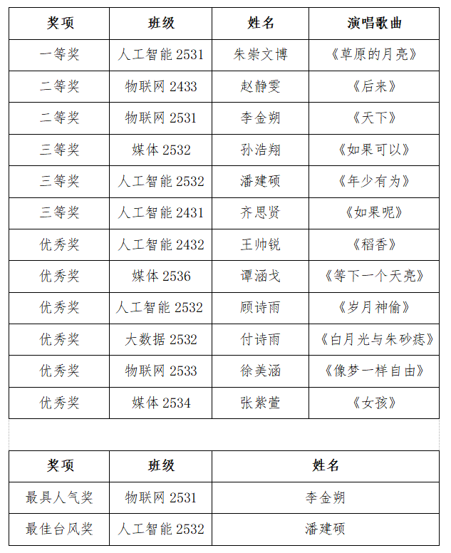 经过激烈的角逐,此次歌手大赛的最终结果重磅揭晓。